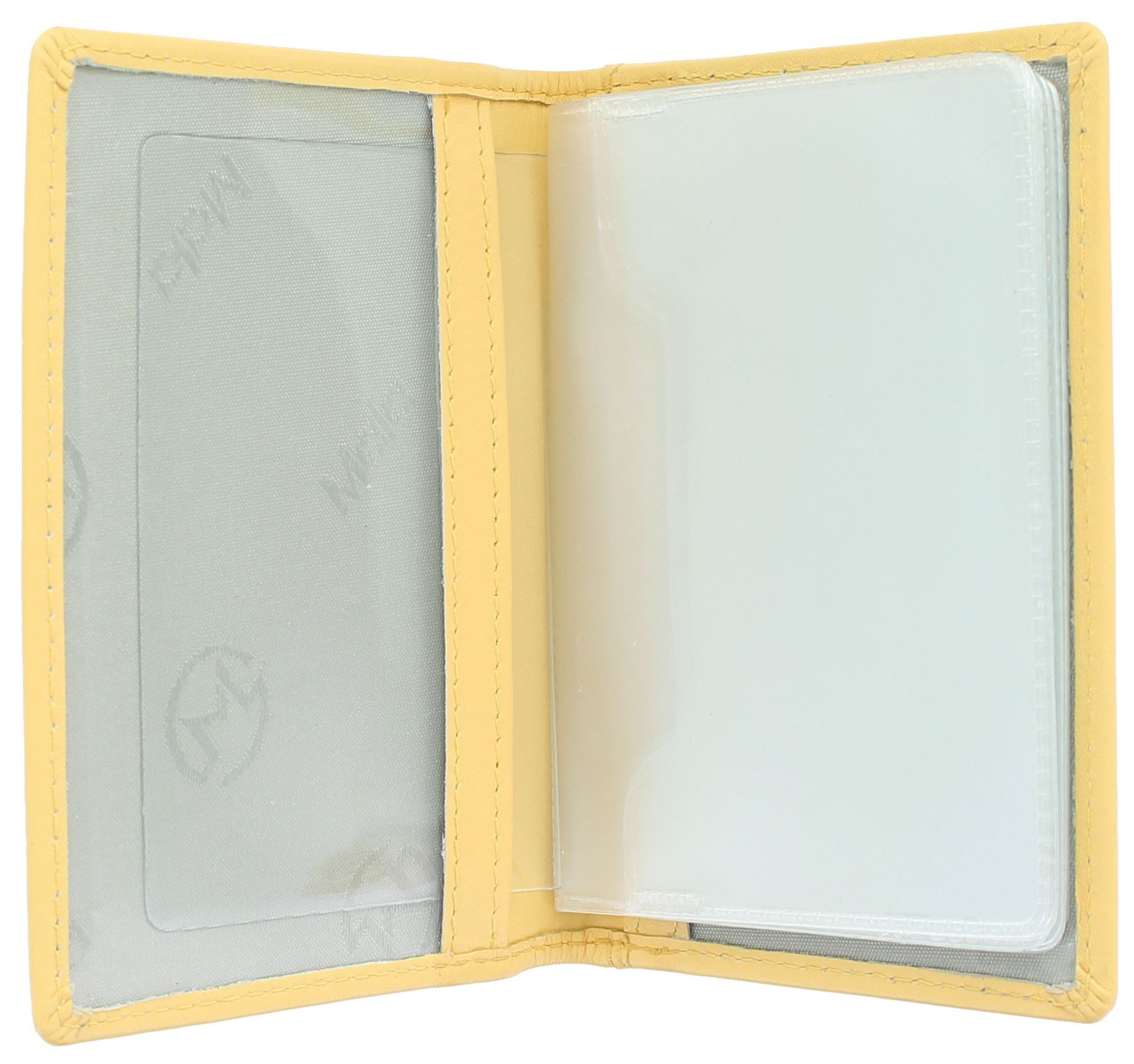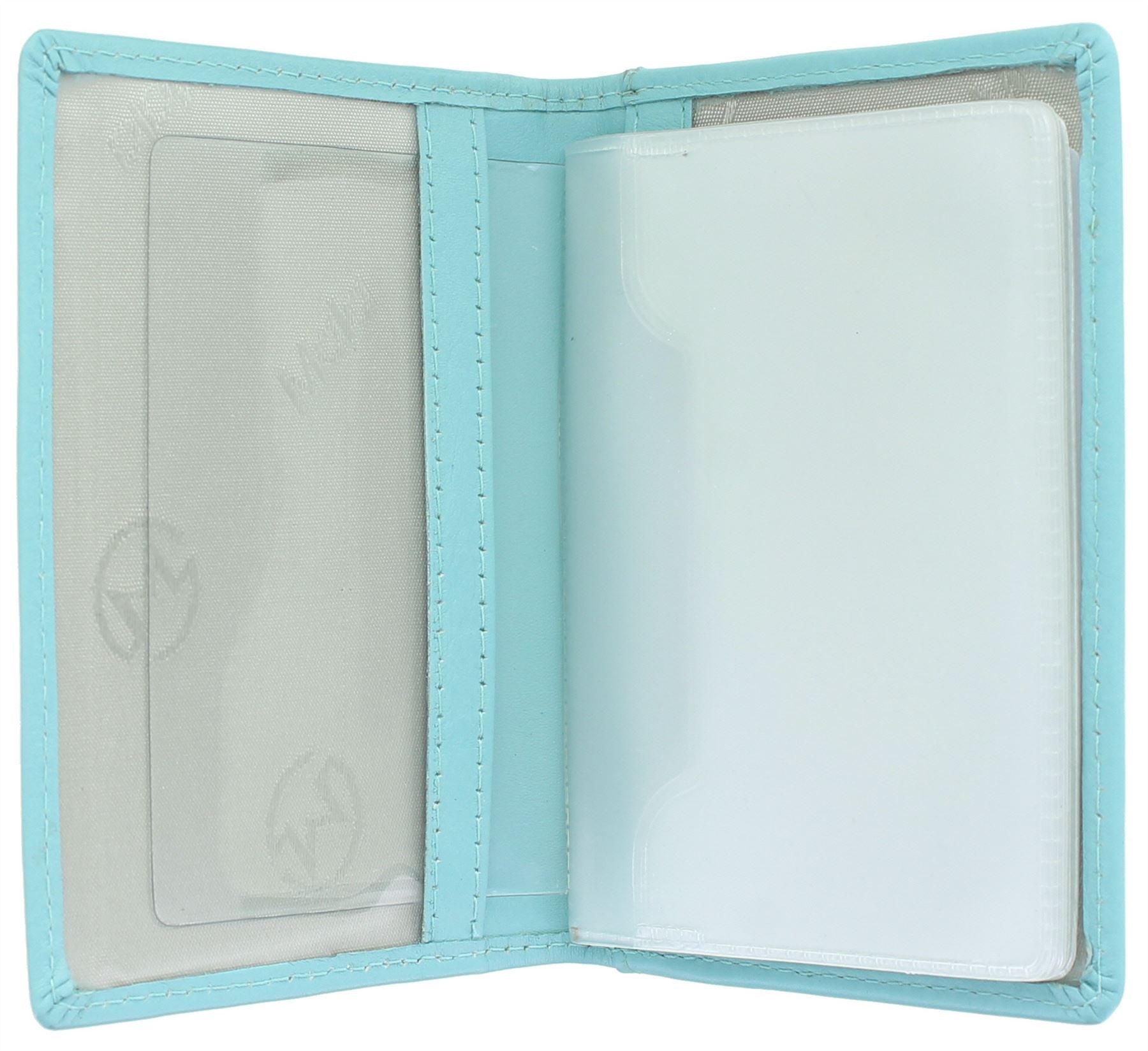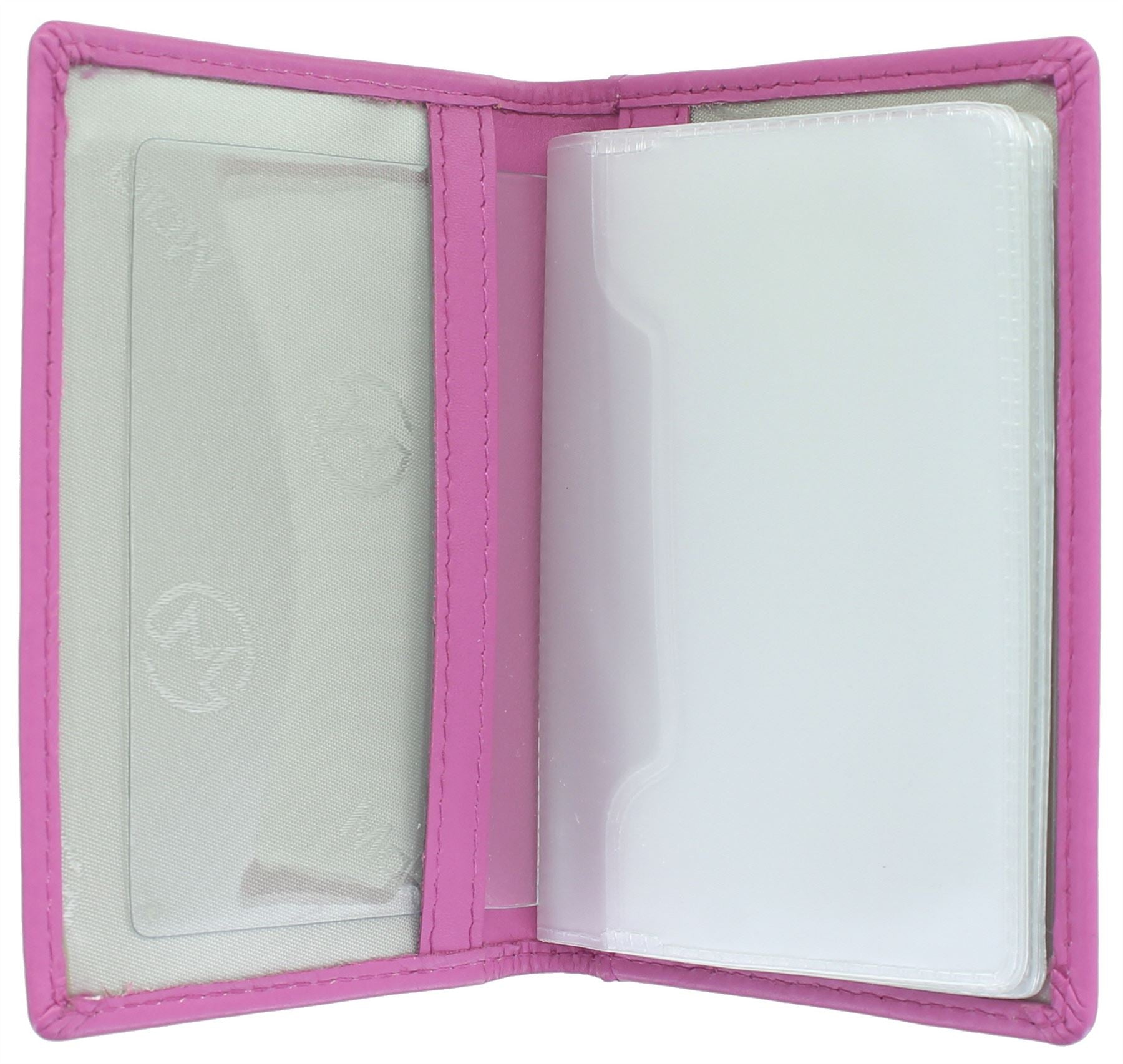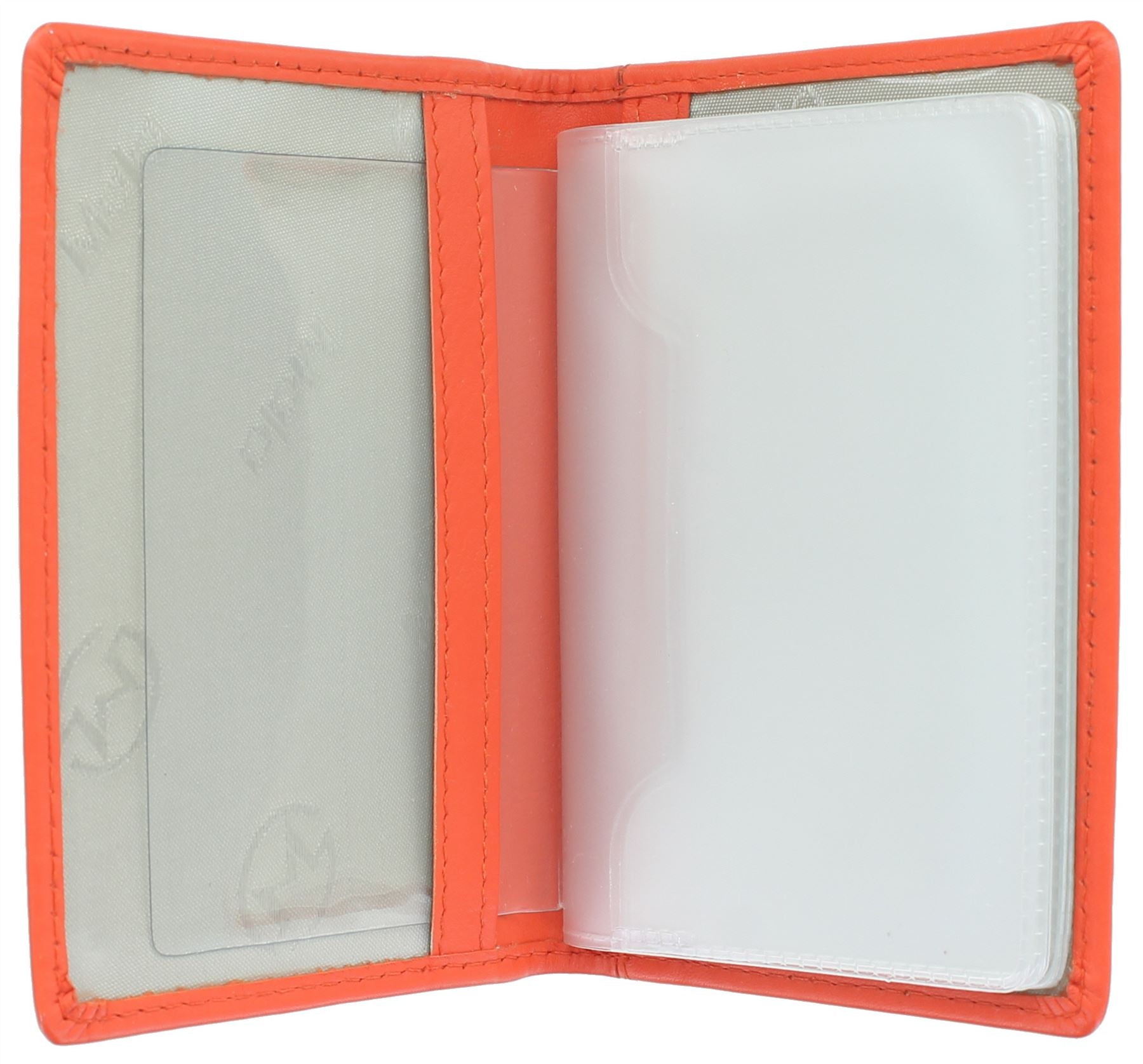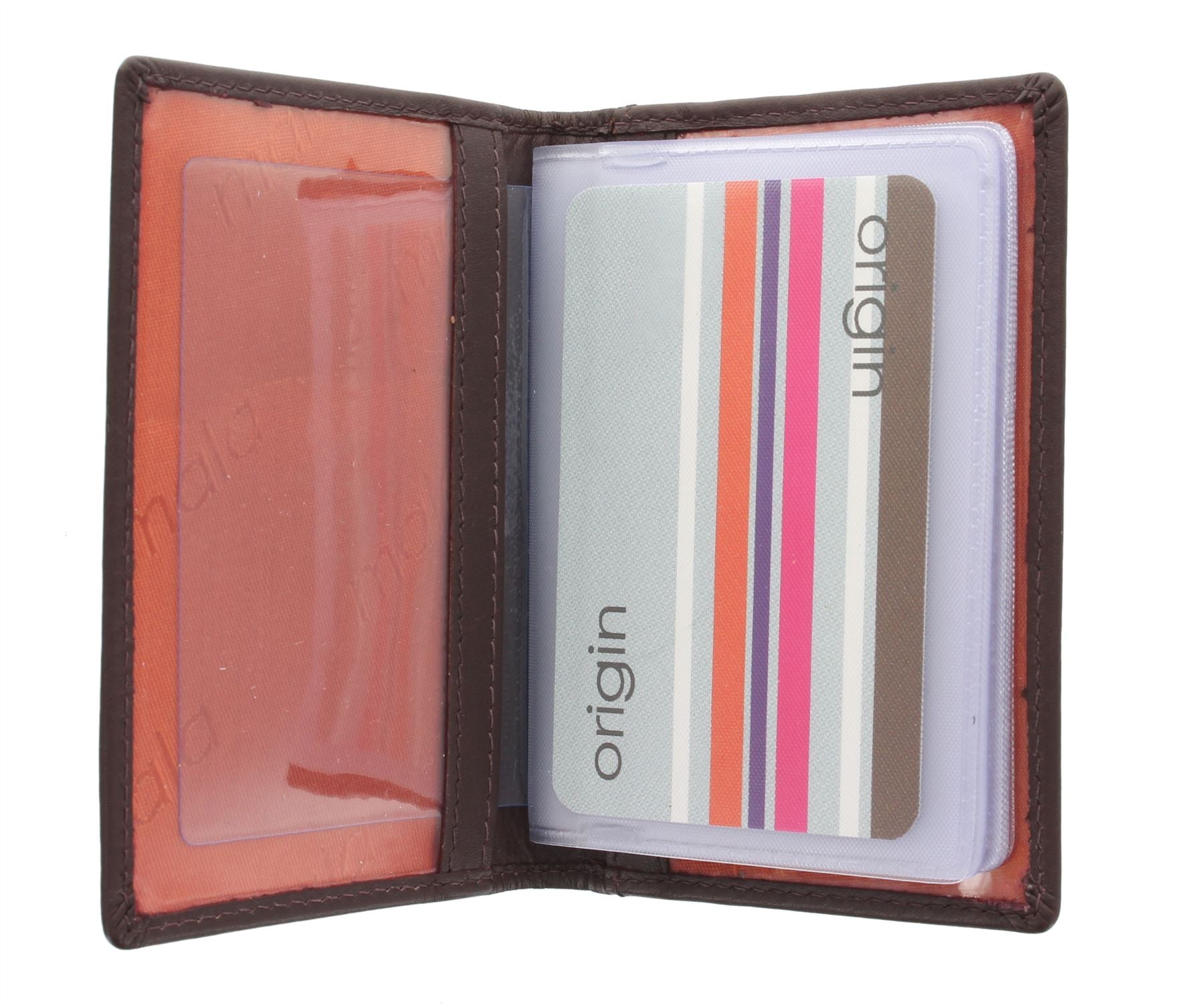 12 credit card slots. The plastic insert holds 12 cards - this can be removed leaving an I/D holder with 2 clear plastic windows. Exterior slip pocket for receipts etc