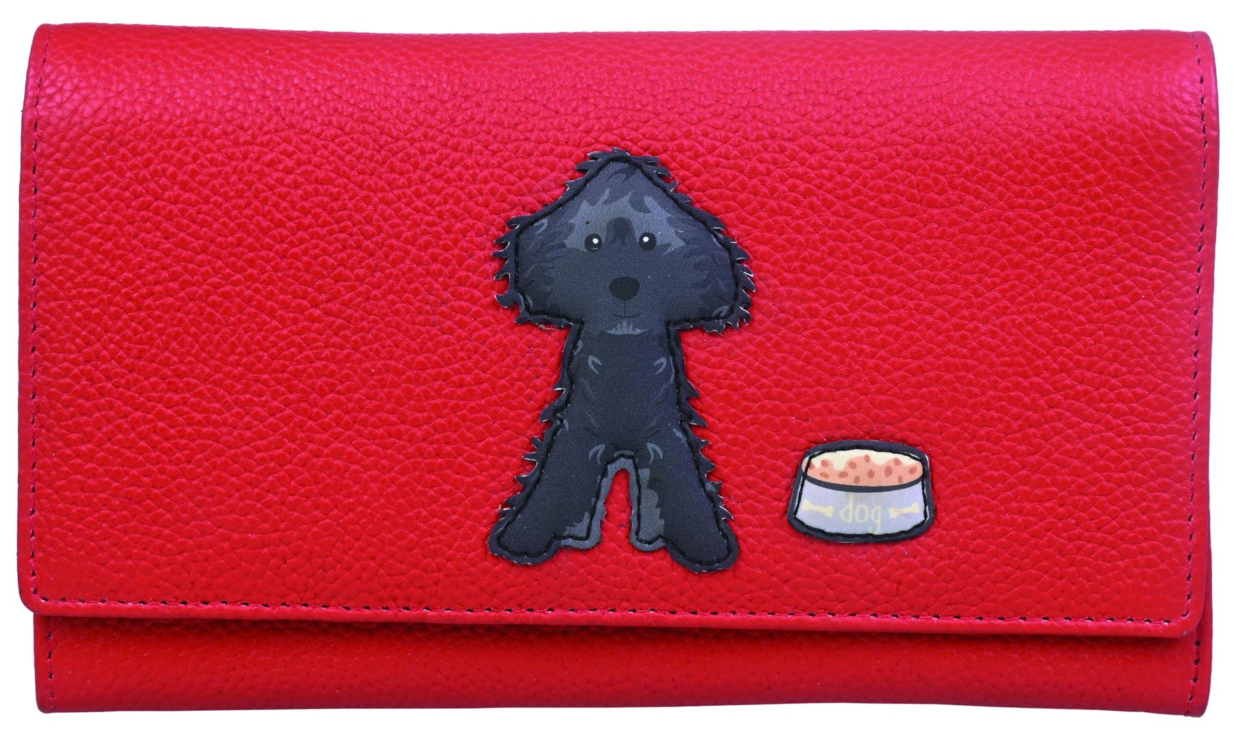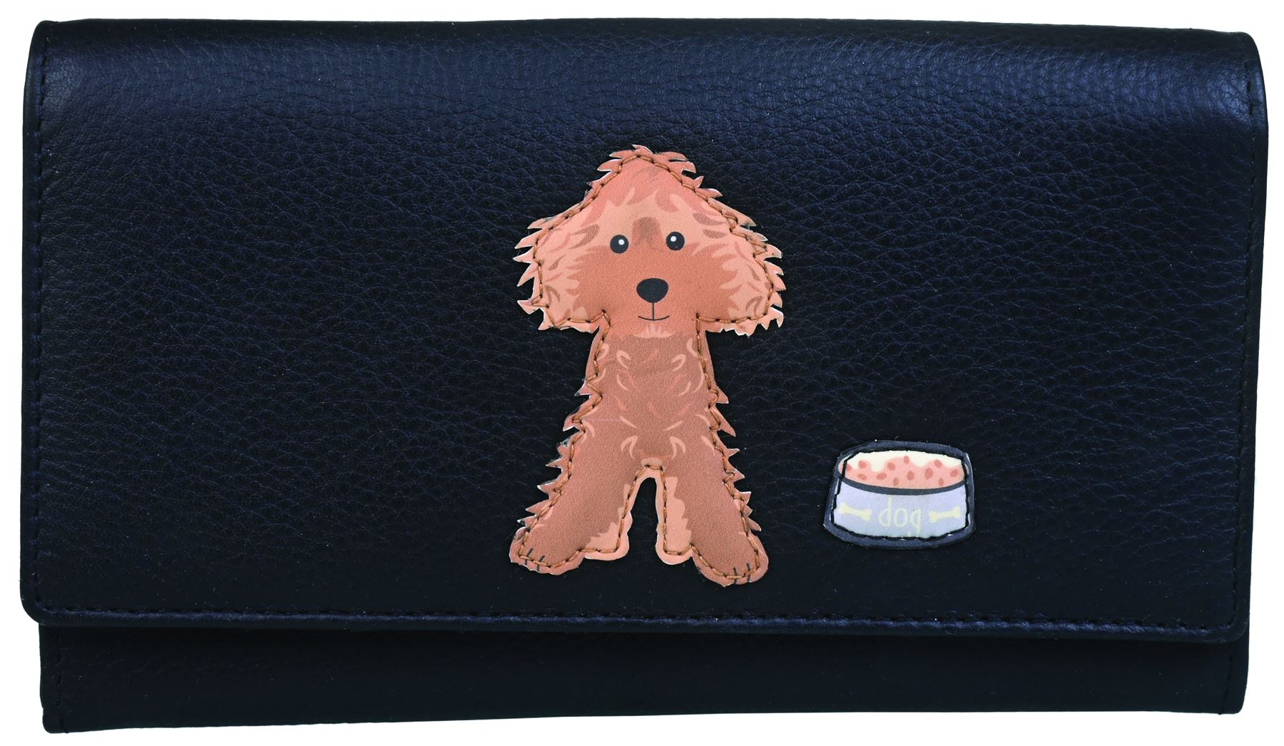 Soft supple leather flap over purse with applique 'cockapoo' design 17cm x 10cm x 2.5cm