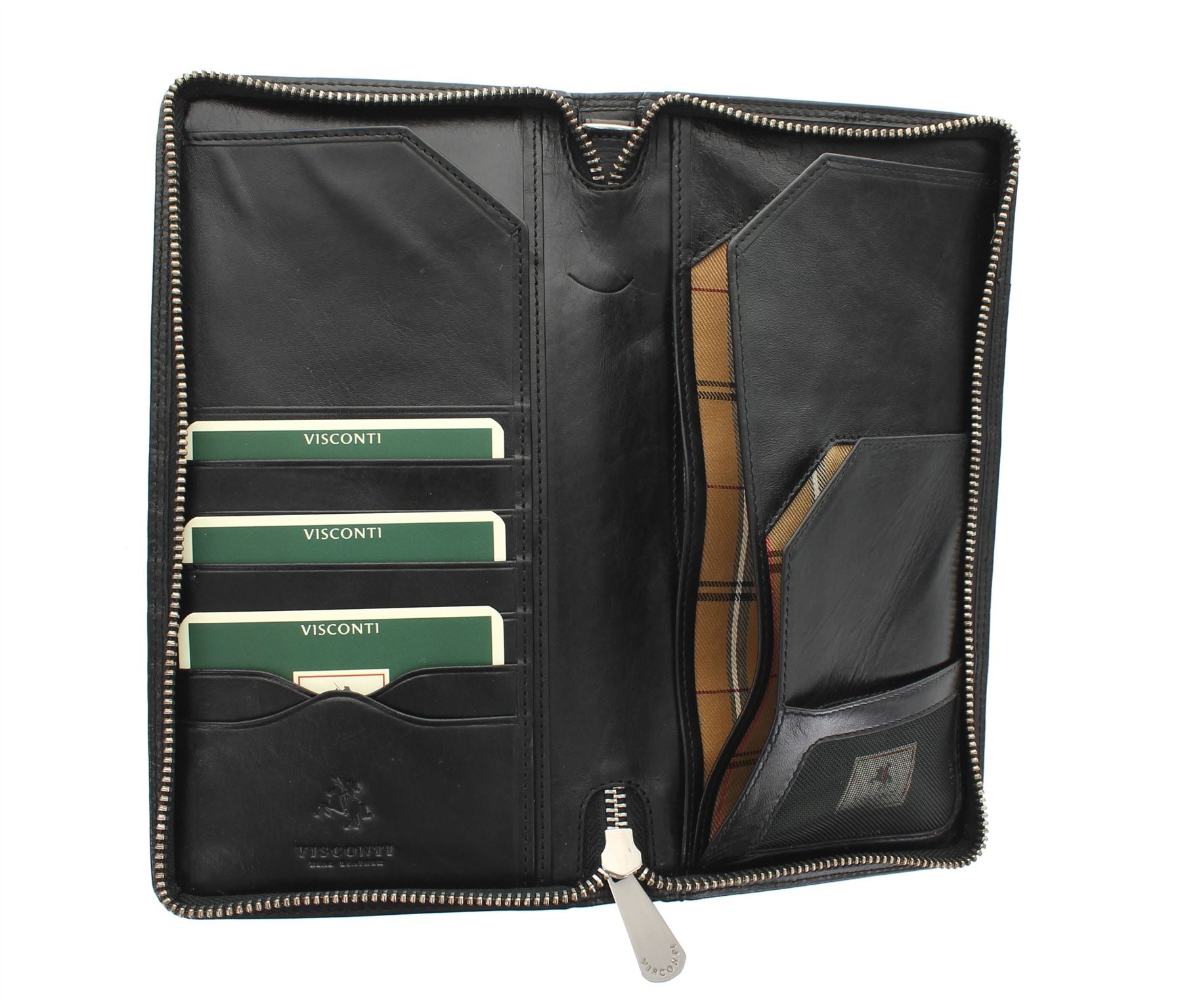 The interior of the wallet is blind embossed with the Visconti logo. Quality fabric lining and presentation box