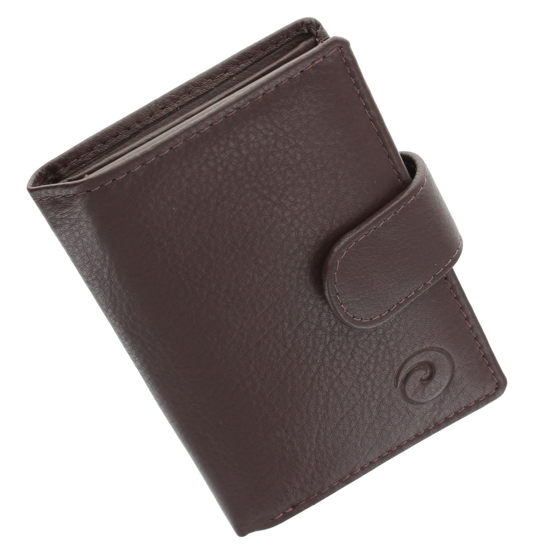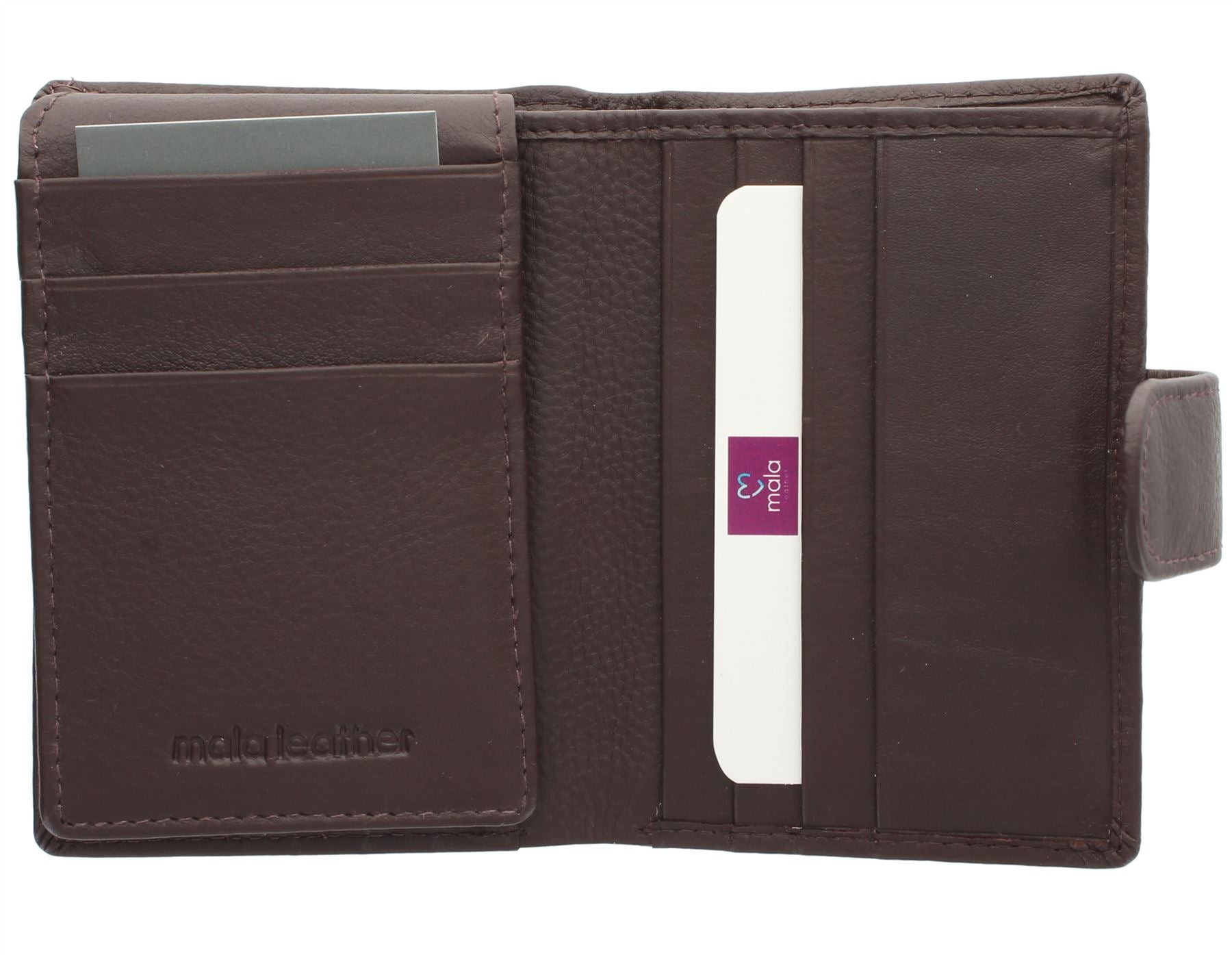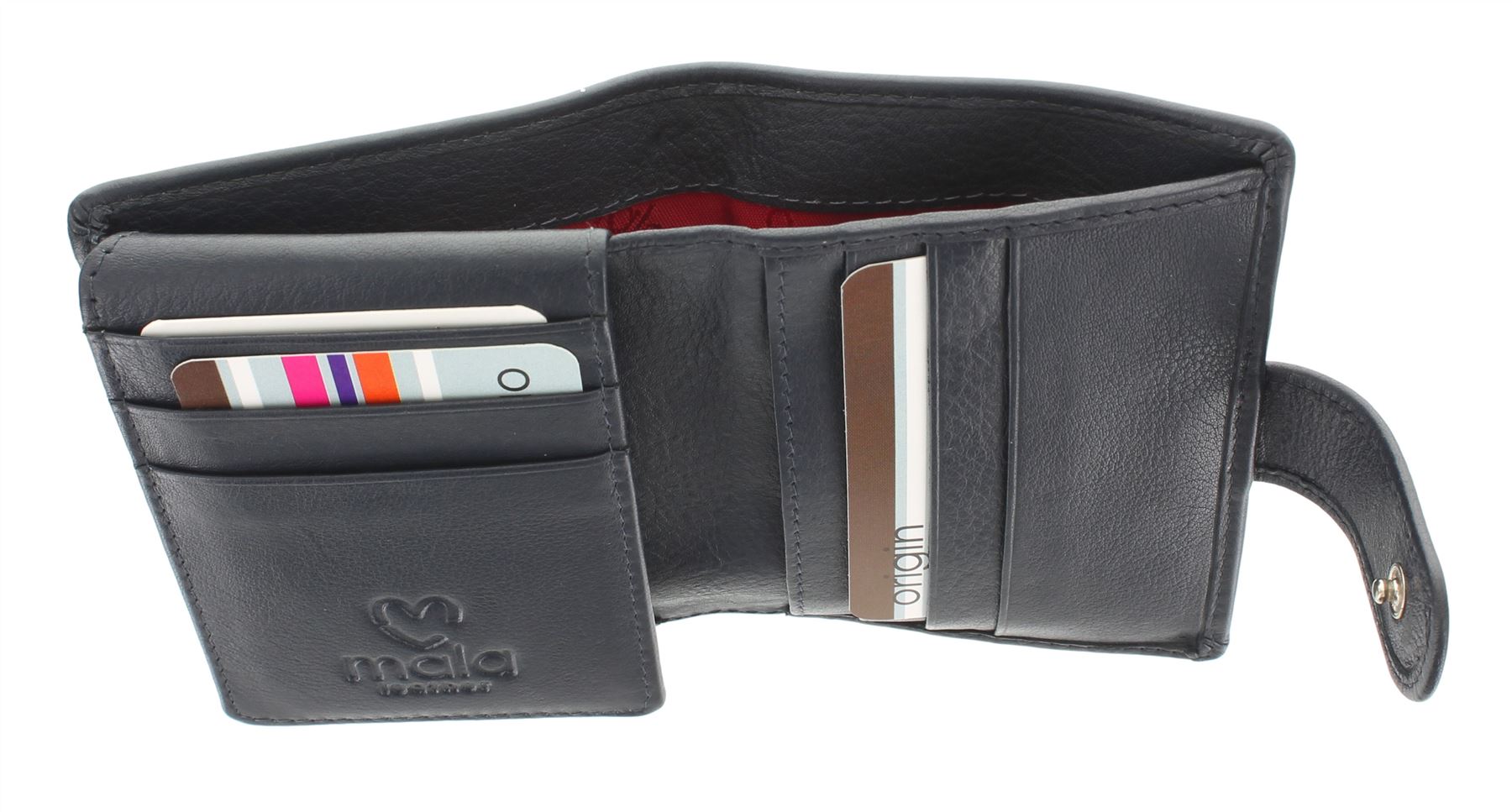2 slip pockets for receipts / extra cards. The holder is secured by a leather tab with press stud fastening