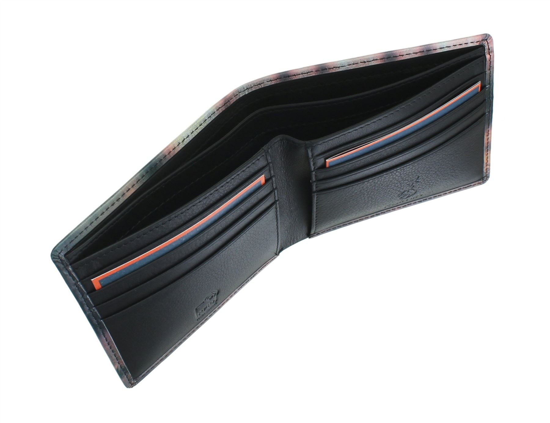 Soft leather gents bi-fold wallet with print detail 11cm x 9.5cm x 2cm