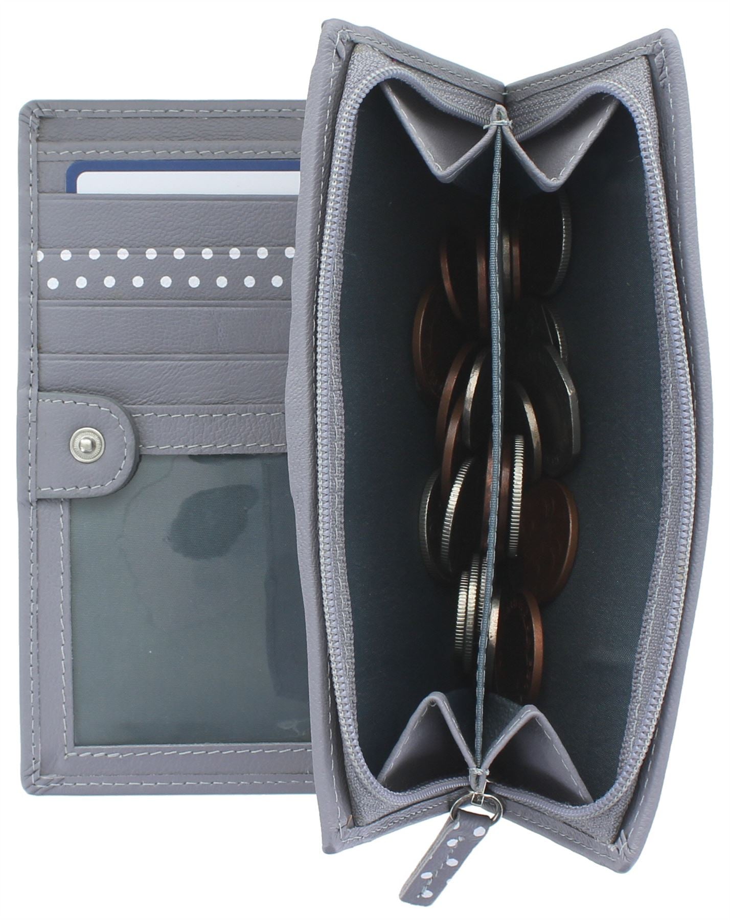 Zipped coin section with central divider. Blind embossed with the Mala Leather logo. Quality fabric lining and presentation dust bag