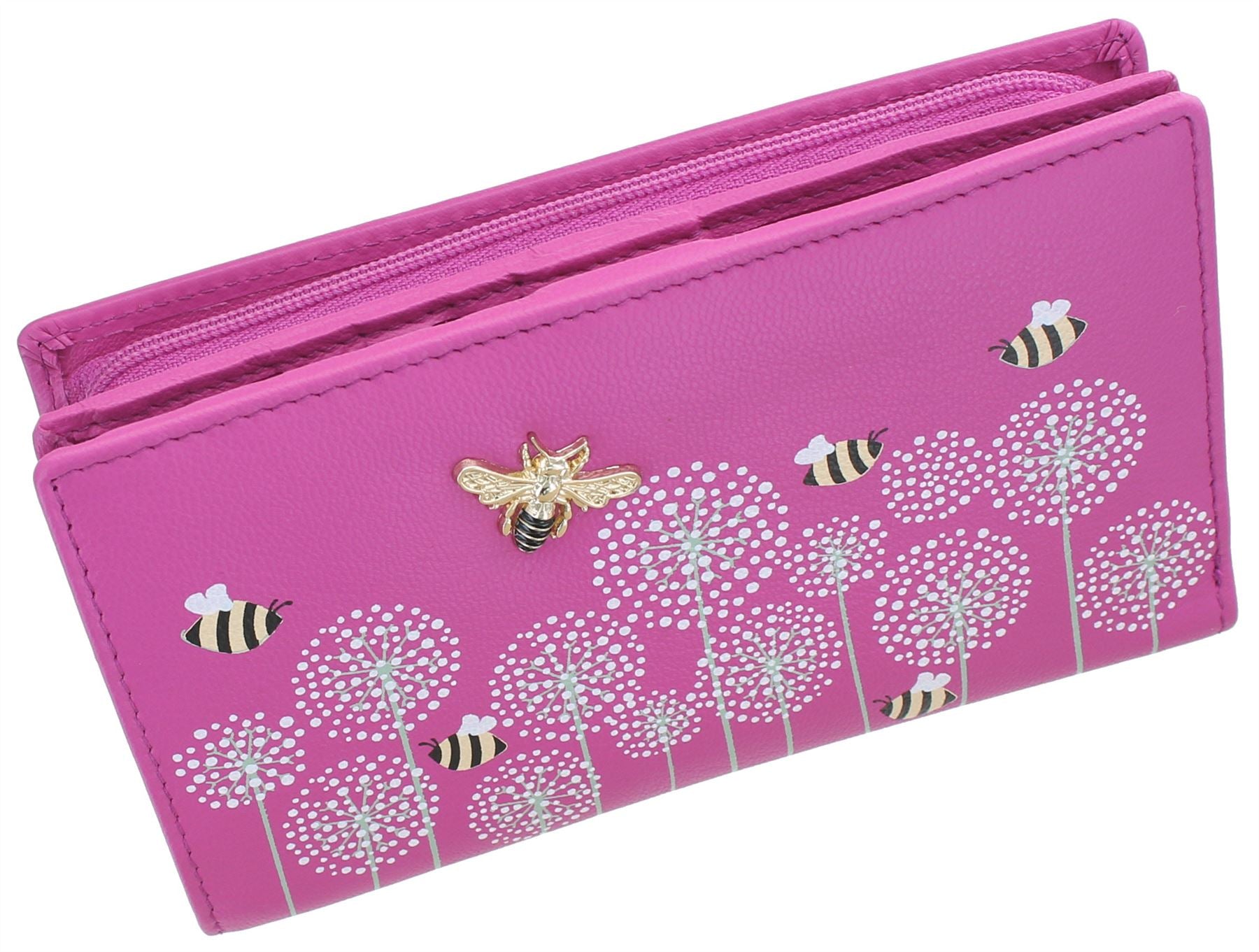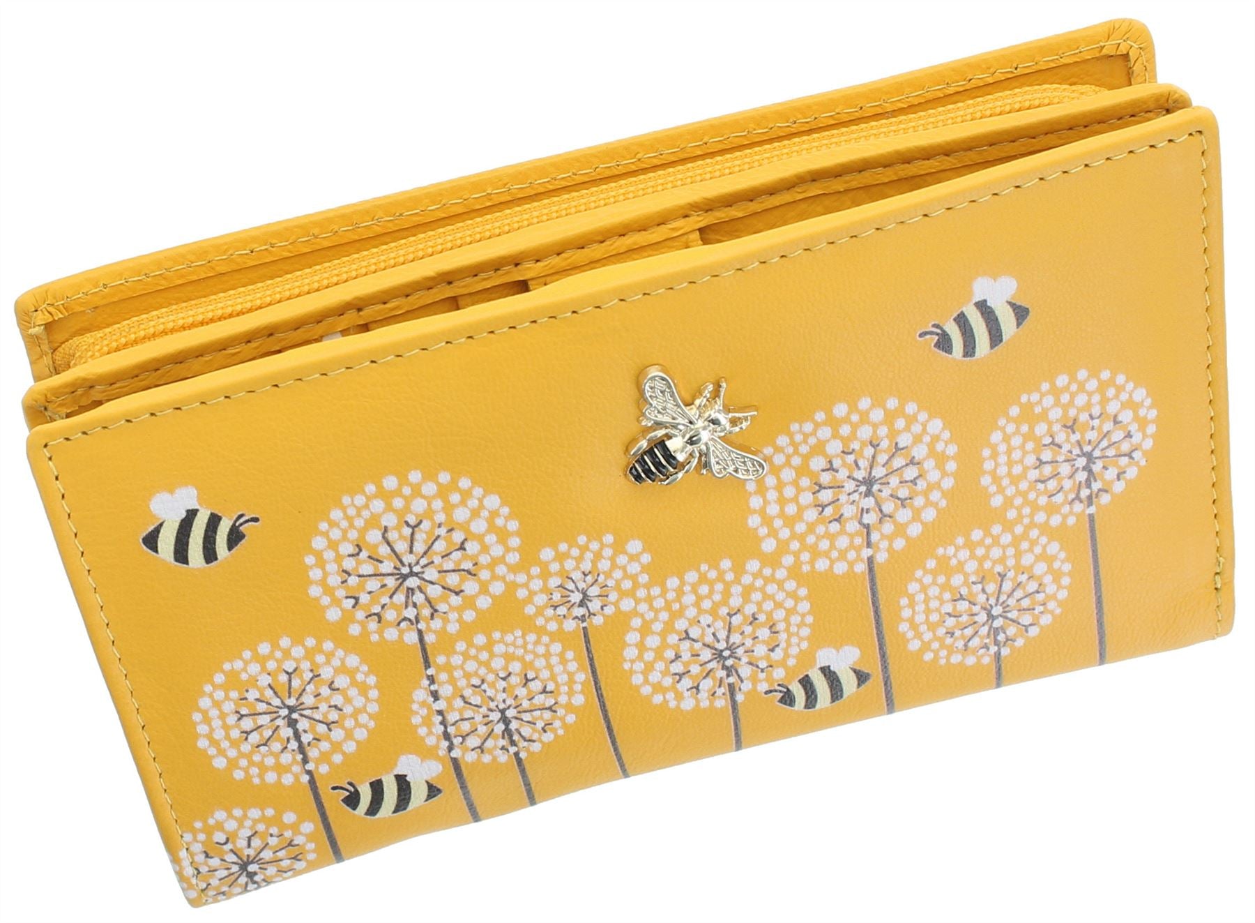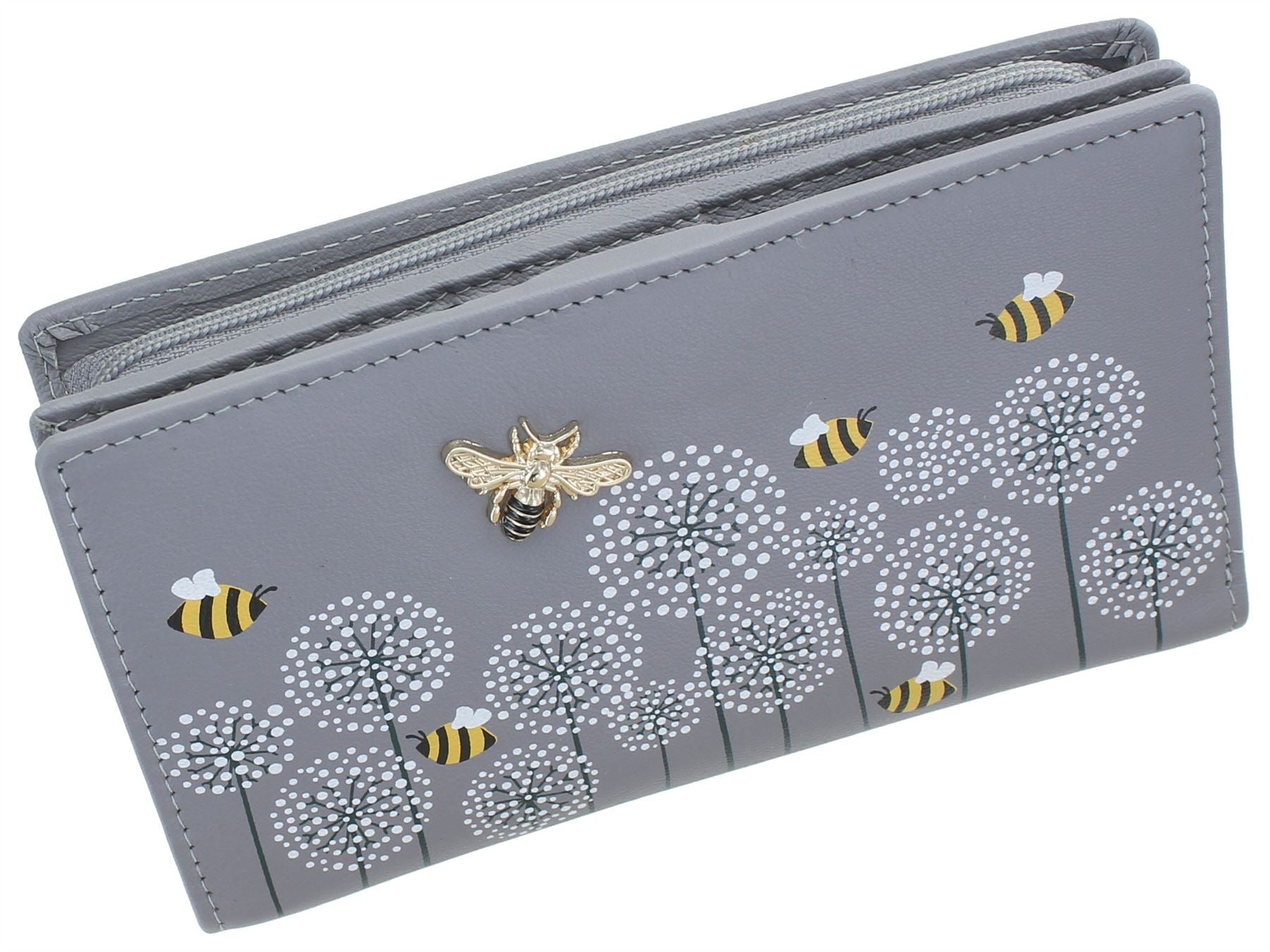 Soft supple leather ladies purse with decorative applique and print bee detail 15cm x 9cm x 3cm
