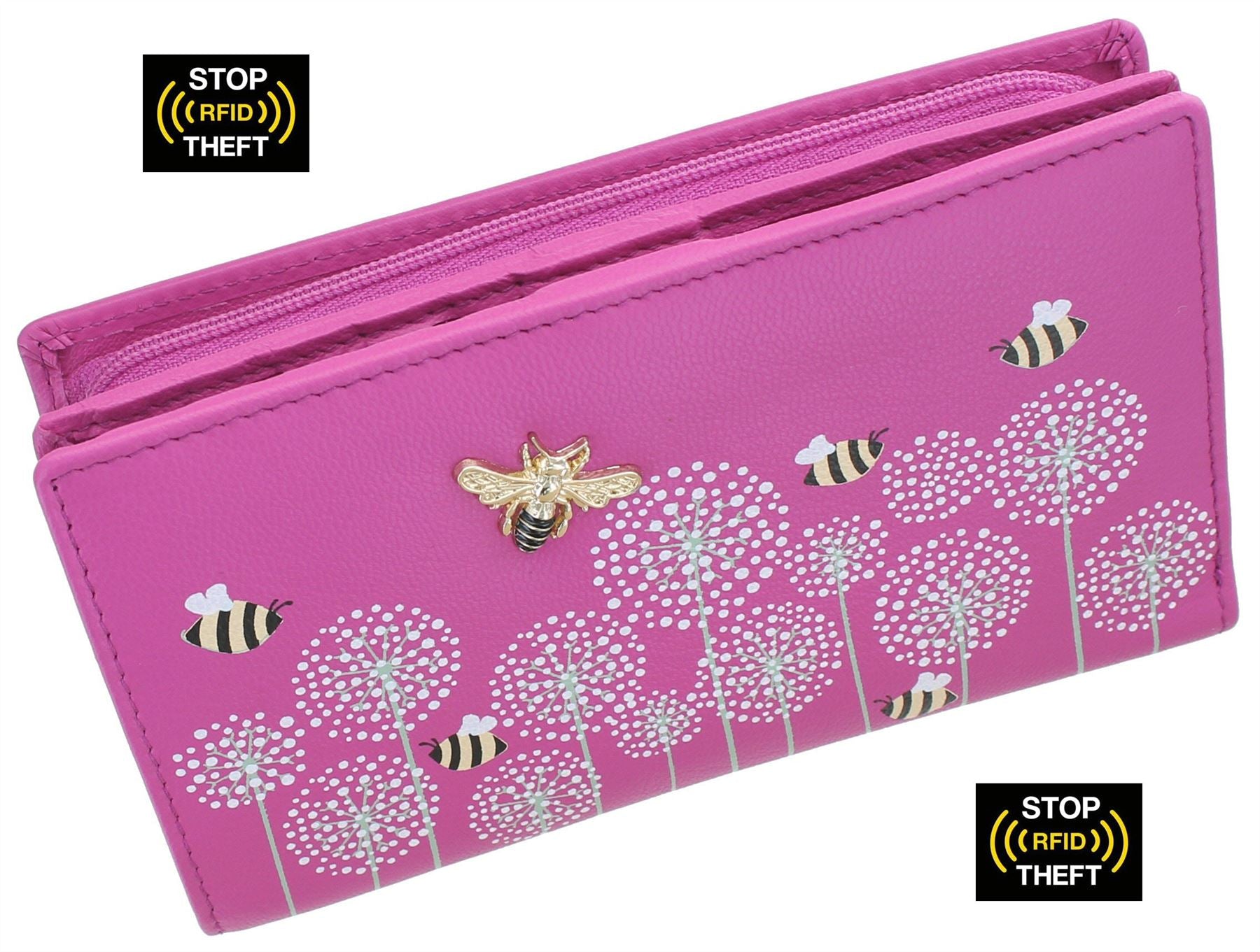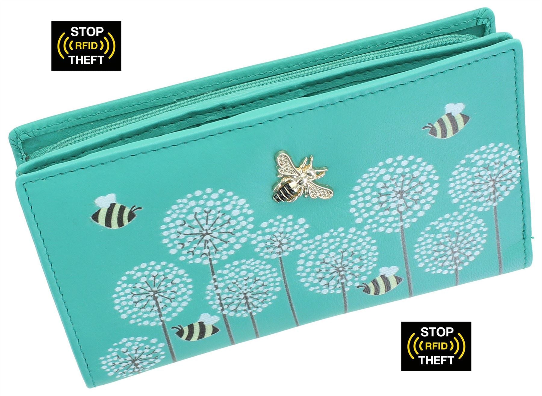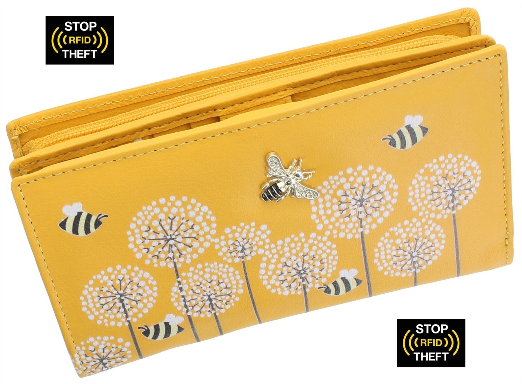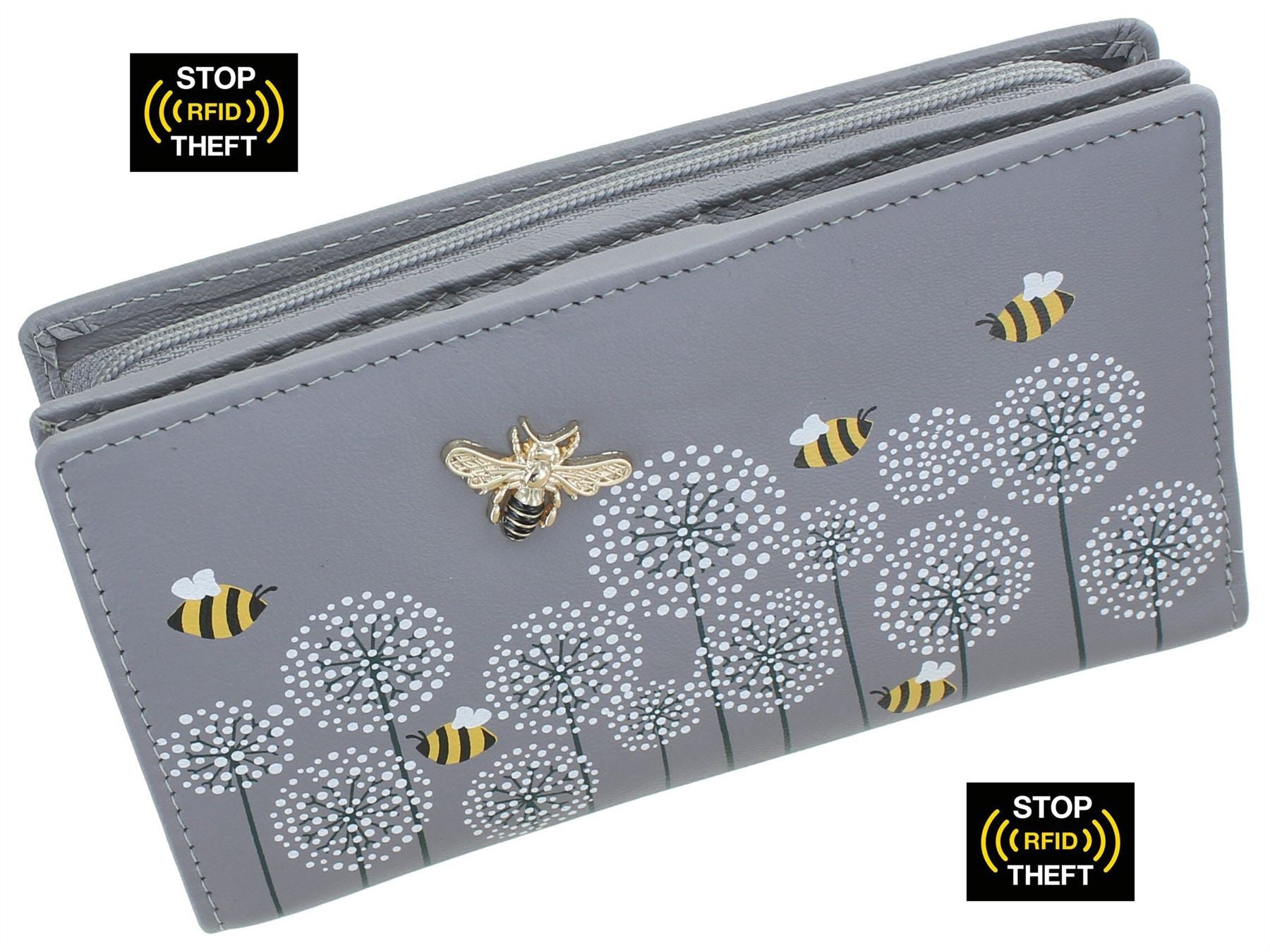 Soft supple leather ladies purse with decorative applique and print bee detail 15cm x 9cm x 3cm