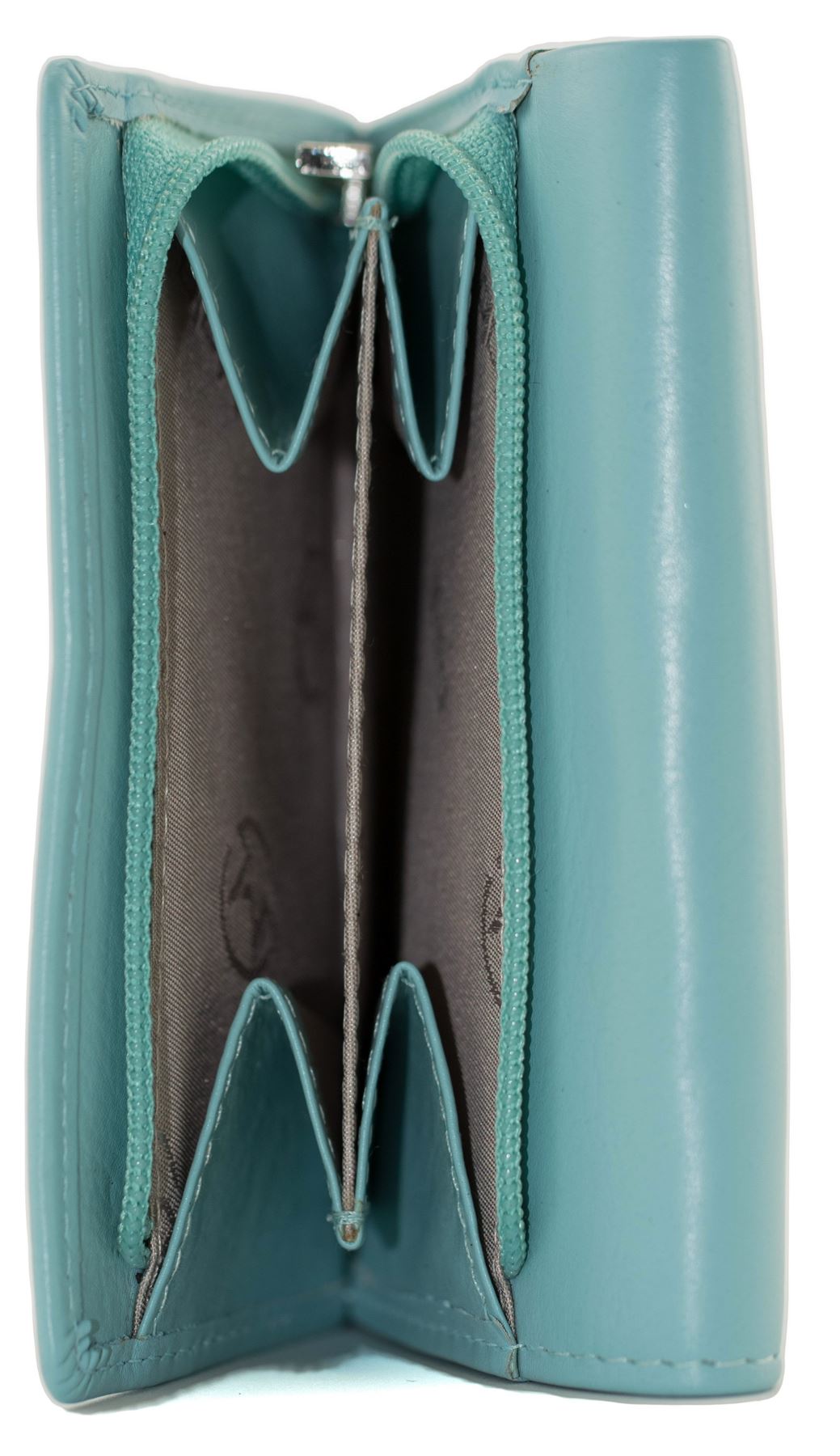 Soft leather ladies tri fold small purse 11cm x 9cm x 3cm.