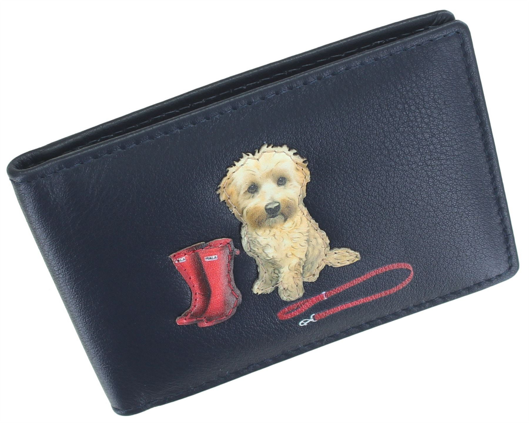 Soft supple leather travel card holder with applique 'Coco's Walk' detail 10cm x 7cm x 1cm.