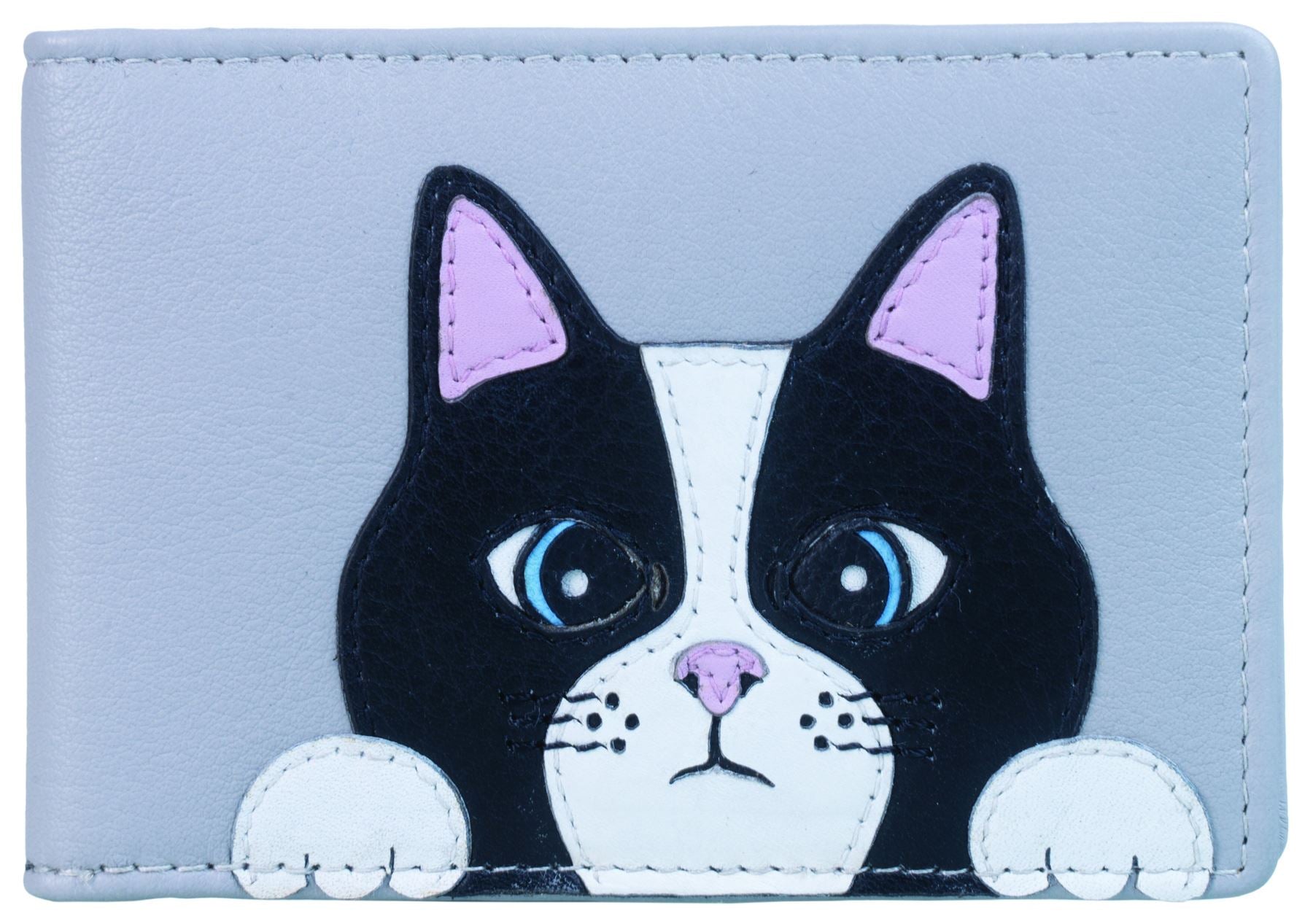 Soft supple leather travel/credit card holder with applique 'cat' detail 10.5cm x 7cm x 1cm