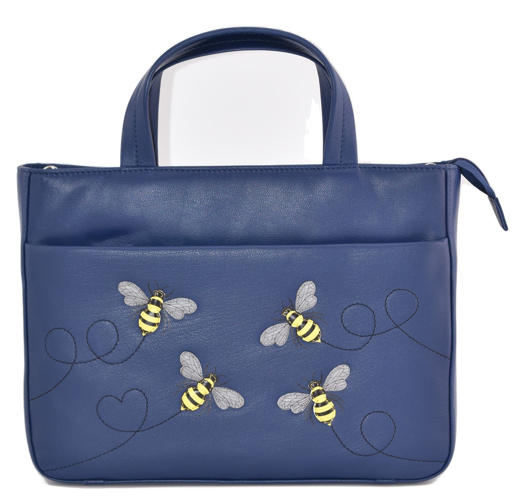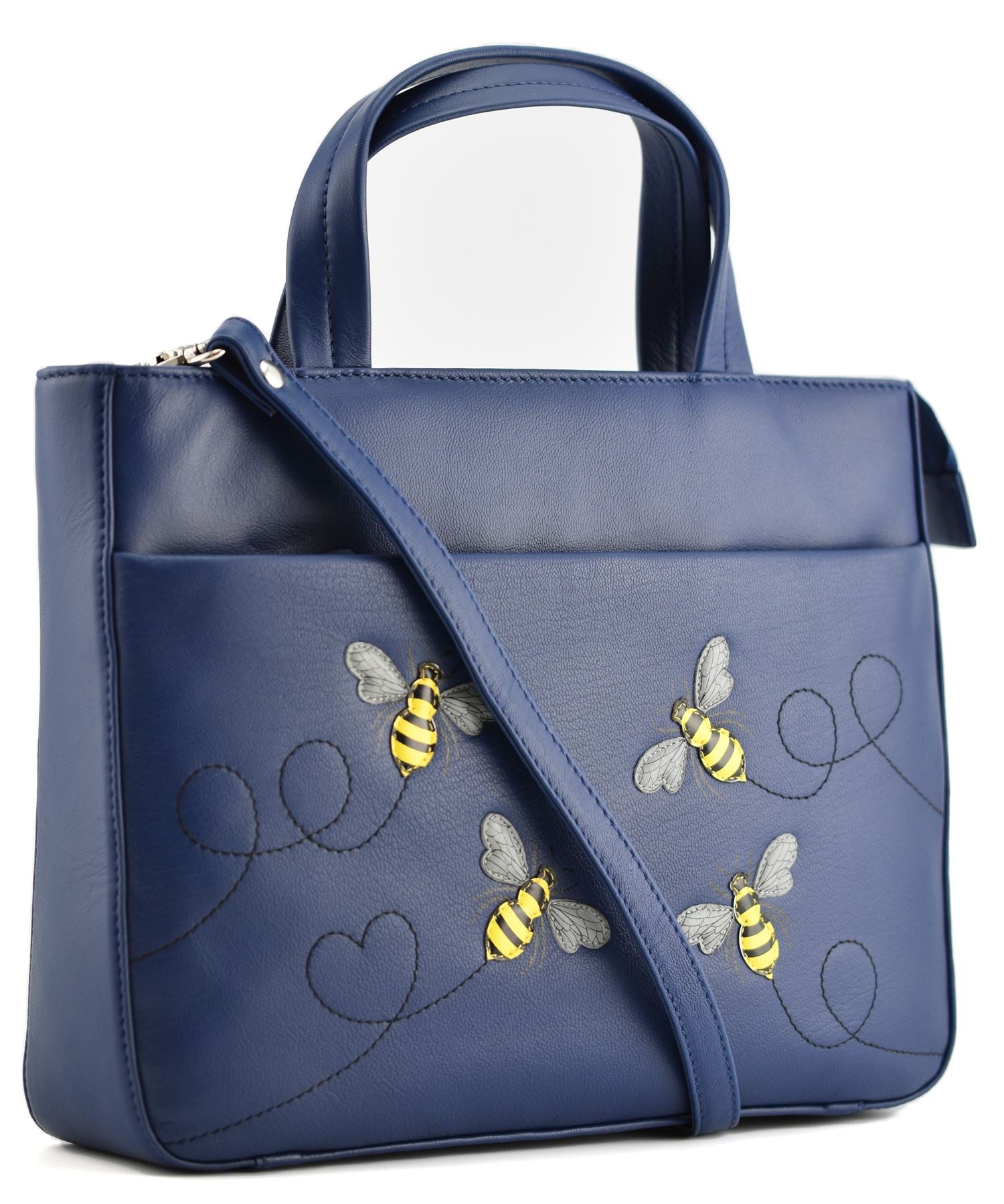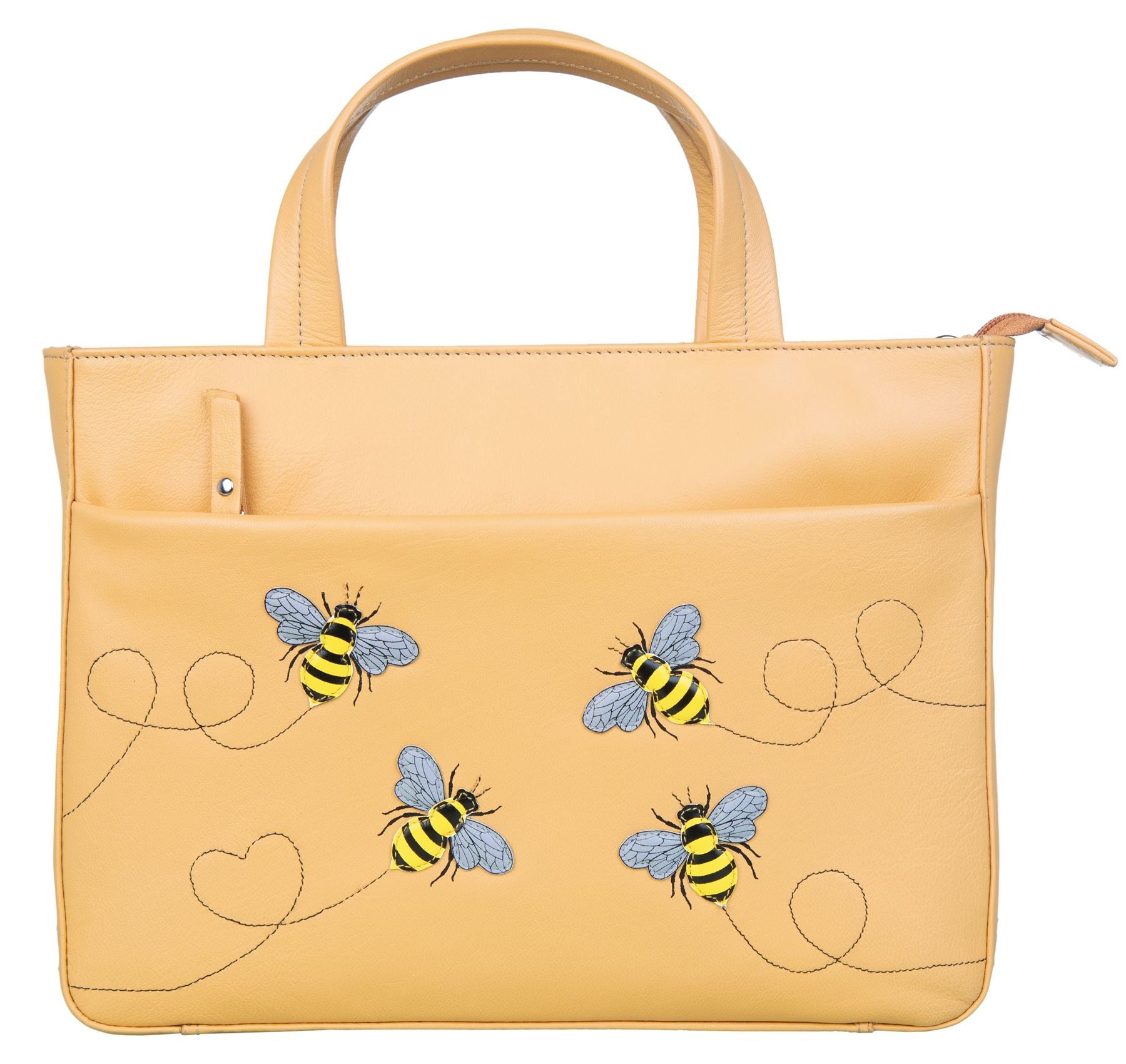 Soft supple leather grab bag, adjustable detachable shoulder strap with decorative applique 'bee' detail 31cm x 23cm x 6cm