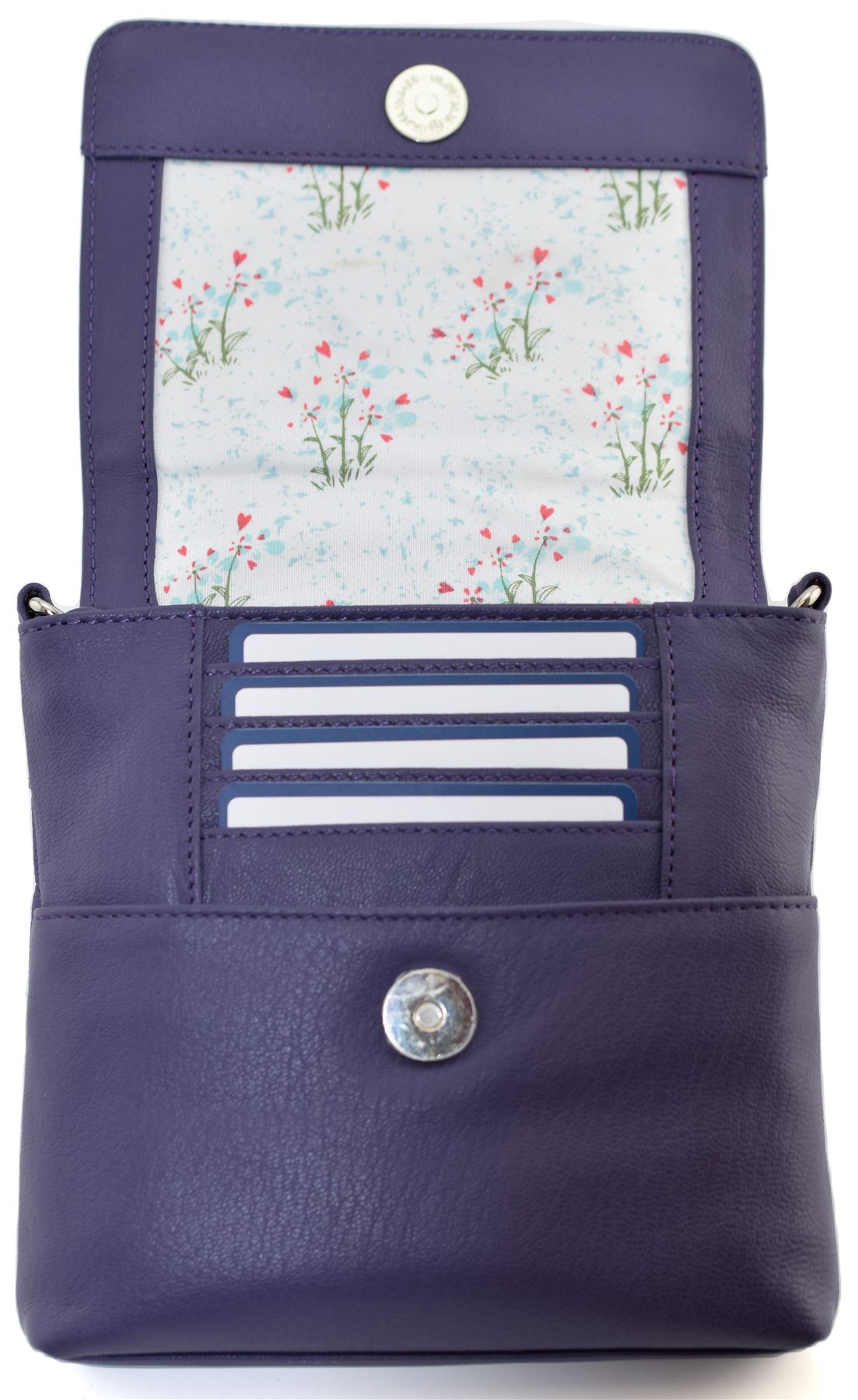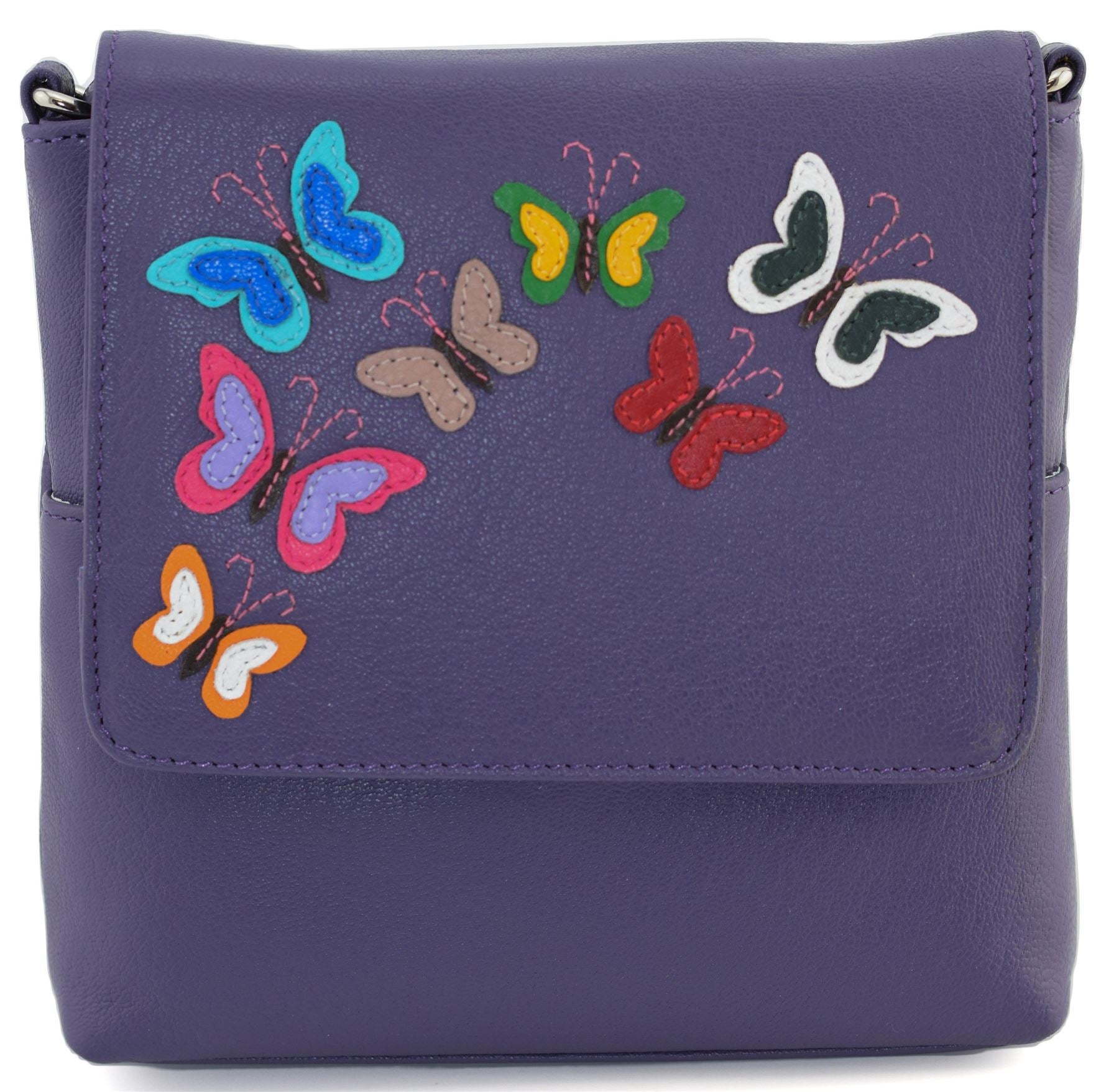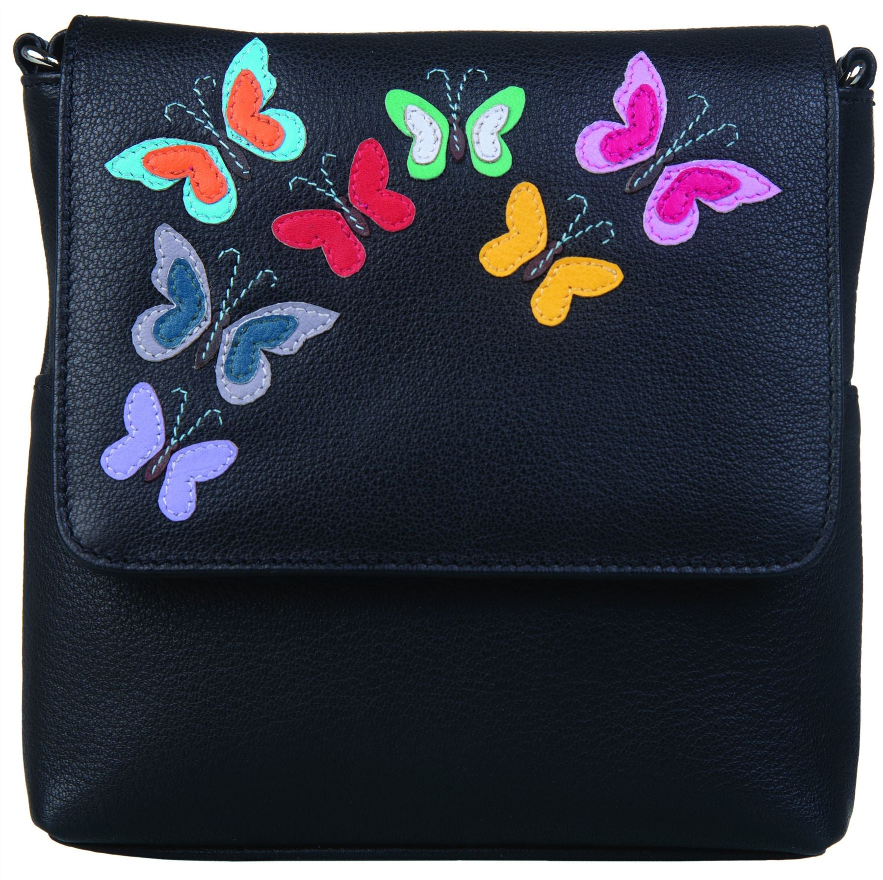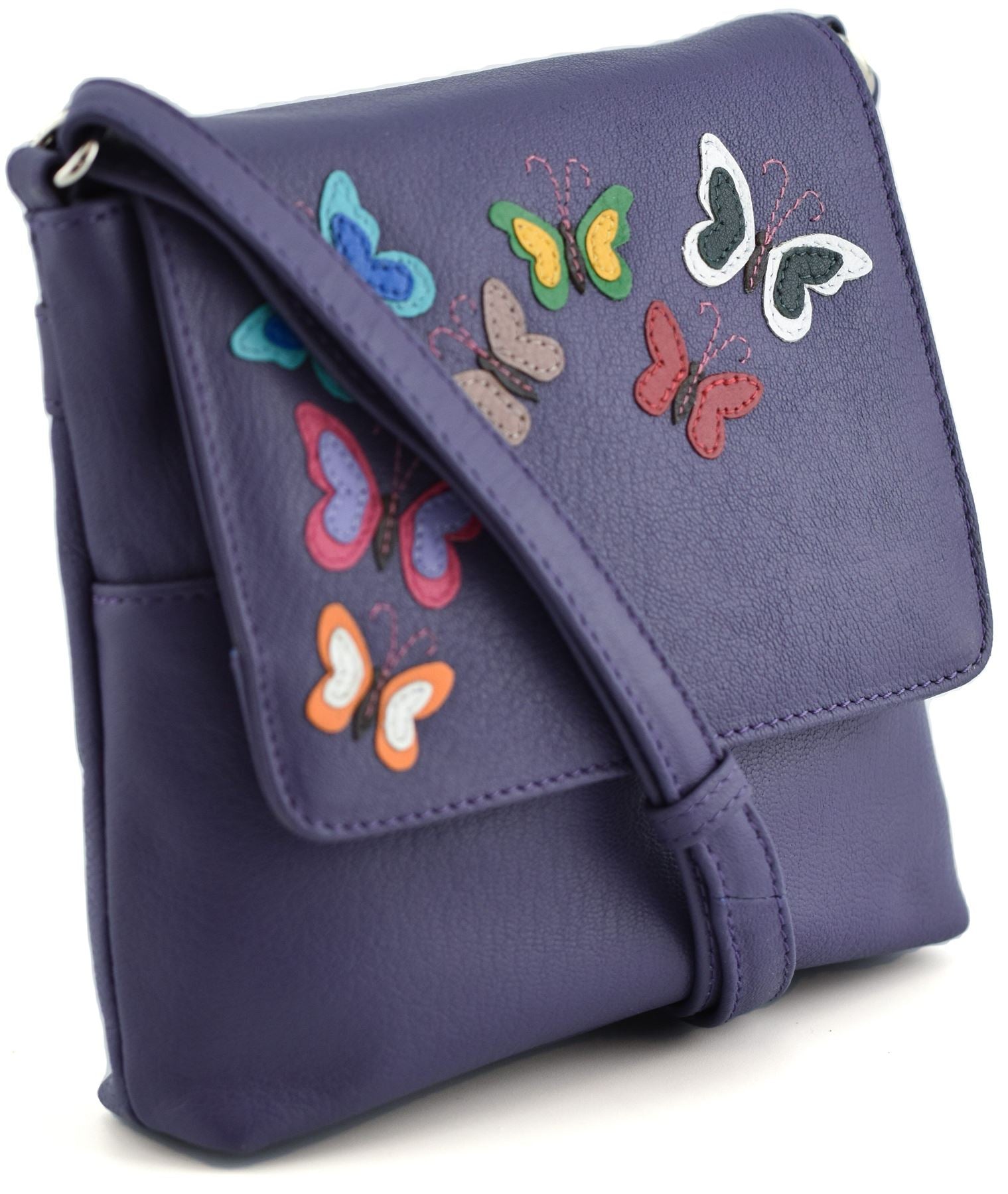 Fantastic quality soft leather compact shoulder/cross body messenger organiser bag with applique butterfly detail 16cm x 17cm x 5cm